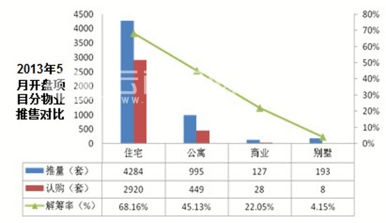 解籌:5月普通住宅項目開盤解籌率較4月回升,為68.16%,公寓解籌45.13%,商業(yè)與別墅解籌情況不理想。