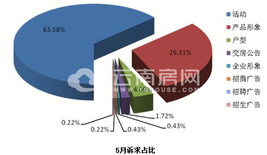 訴求豐富:5月媒體廣告訴求點較為豐富,涵蓋形象、活動、戶型、招聘、交房等廣告;