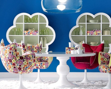 藍(lán)色令人遐想,還可以調(diào)節(jié)神經(jīng)、鎮(zhèn)靜安神,清新淡雅的藍(lán)色與水果也很相配,但是在裝修時(shí),藍(lán)色不宜用在餐廳或是廚房,因?yàn)樗蝗缗钊擞惺秤,同樣,燈光也不要用藍(lán)色。
