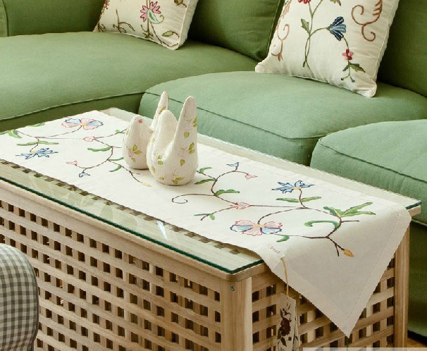 棉麻魯繡刺繡田園風(fēng)格手工繡花桌旗桌布?xì)W式美式鄉(xiāng)村布藝餐旗
