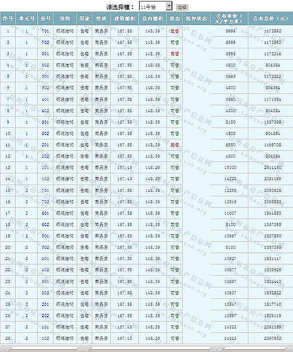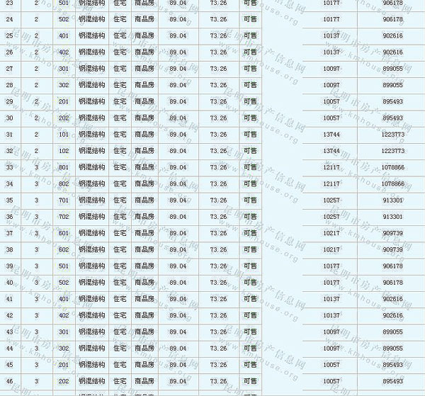 根據(jù)云南省物價局關(guān)于發(fā)布《云南省商品房銷售明碼標價實施細則(試行)》的通知,現(xiàn)將該項目商品住房的準售房源及每套房屋價格向社會公布,房地產(chǎn)開發(fā)企業(yè)應(yīng)嚴格按照公布價格,商品房銷售明碼標價實行一套一標。商品房經(jīng)營者應(yīng)當對每套商品房按照建筑面具進行明碼標價,否則,房產(chǎn)登記機關(guān)不予登記備案。準售房源及房價信息如下: