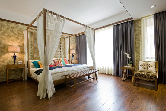 設(shè)計師建議:很多人對東南亞風格的了解都來自網(wǎng)絡(luò)或是圖冊,有局限性,風格也做得比較保守,其實東南亞色彩可以更炫麗,材質(zhì)上也不僅僅是藤編或是木材,建議喜歡這種風格的朋友將更大的配飾選擇的空間留給設(shè)計師。