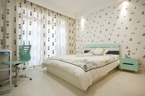 簡(jiǎn)潔的沙發(fā)背景墻設(shè)計(jì),簡(jiǎn)潔的線條突出設(shè)計(jì),再加上整個(gè)空間以點(diǎn)光源為主,在空間的呈現(xiàn)方式變得很不一樣。線條,也是本案的一個(gè)亮點(diǎn),不突出,但給予人律動(dòng)感,設(shè)計(jì)師將窗簾、桌面、置物架等等不同線條,靈活運(yùn)用在空間里,依傍著陽光,接口透過線條的比例,深淺消長(zhǎng),以一種絕非秩序的想象的姿態(tài),包容生活環(huán)境?臻g,經(jīng)由時(shí)間及光線的釀構(gòu),動(dòng)靜之間,衍生動(dòng)人表情及感受存在的永恒與變化。