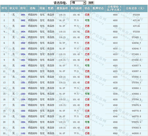 根據(jù)云南省物價局關(guān)于發(fā)布《云南省商品房銷售明碼標(biāo)價實施細(xì)則(試行)》的通知,現(xiàn)將該項目商品住房的準(zhǔn)售房源及每套房屋價格向社會公布,房地產(chǎn)開發(fā)企業(yè)應(yīng)嚴(yán)格按照公布價格,商品房銷售明碼標(biāo)價實行一套一標(biāo)。商品房經(jīng)營者應(yīng)當(dāng)對每套商品房按照建筑面具進行明碼標(biāo)價,否則,房產(chǎn)登記機關(guān)不予登記備案。準(zhǔn)售房源及房價信息如下: