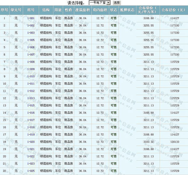 昆明玉器城(地塊2)一期一號、三號地下室準(zhǔn)售房源及房價(jià)公示
