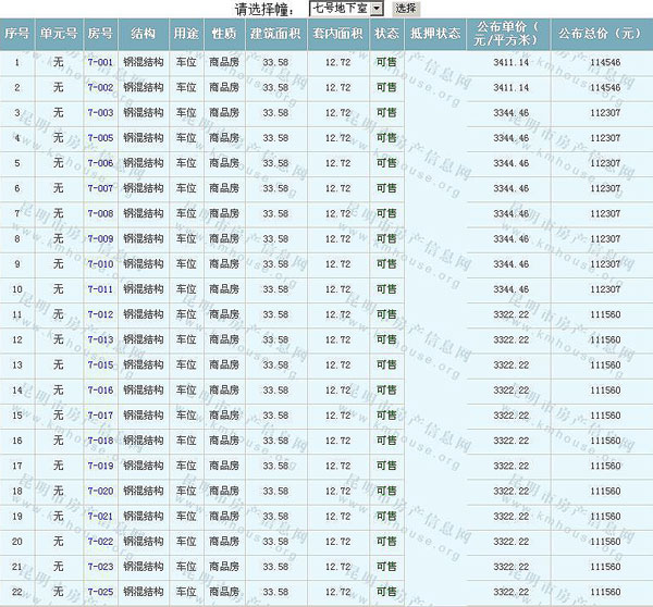 昆明玉器城(地塊2)一期二號、七號地下室準售房源及房價公示