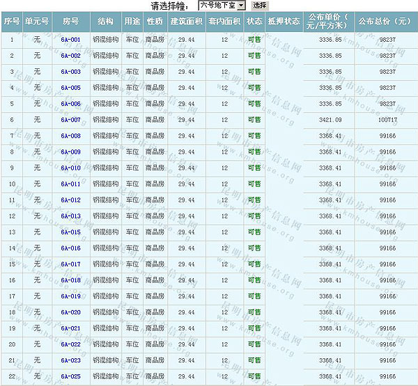 昆明玉器城(地塊2)一期六號(hào)地下室準(zhǔn)售房源及房?jī)r(jià)公示