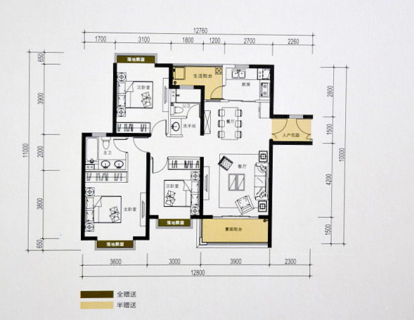 C1戶(hù)型面積113㎡采用三室兩廳一廚兩衛(wèi)雙陽(yáng)臺(tái)設(shè)計(jì)