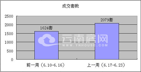 據(jù)云南房網(wǎng)根據(jù)昆明市房產(chǎn)信息網(wǎng)統(tǒng)計(jì)數(shù)據(jù)顯示統(tǒng)計(jì),上周,即2013年06月17日至2013年06月23日,一周內(nèi)昆明主城區(qū)及呈貢新城共成交各類(lèi)商品房2079套,較前一周1624套增加455套,環(huán)比上漲28.02%;成交面積方面,上周昆明樓市成交商品房總面積為185374.89㎡,較前一周172539.12㎡增加了12835.77㎡,環(huán)比上漲7.44%。