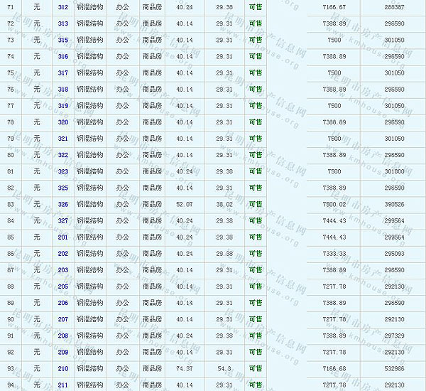 昆明玉器城(地塊2)一期41幢至50幢準售房源及房價公示