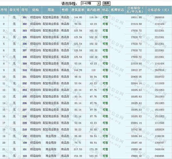 根據(jù)云南省物價(jià)局關(guān)于發(fā)布《云南省商品房銷售明碼標(biāo)價(jià)實(shí)施細(xì)則(試行)》的通知,現(xiàn)將該項(xiàng)目商品住房的準(zhǔn)售房源及每套房屋價(jià)格向社會(huì)公布,房地產(chǎn)開發(fā)企業(yè)應(yīng)嚴(yán)格按照公布價(jià)格,商品房銷售明碼標(biāo)價(jià)實(shí)行一套一標(biāo)。商品房經(jīng)營(yíng)者應(yīng)當(dāng)對(duì)每套商品房按照建筑面具進(jìn)行明碼標(biāo)價(jià),否則,房產(chǎn)登記機(jī)關(guān)不予登記備案。準(zhǔn)售房源及房?jī)r(jià)信息如下: