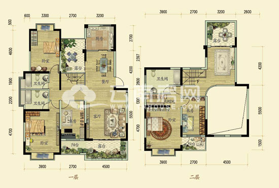 建筑面積210㎡,五室兩廳一廚三衛(wèi)兩陽臺帶三露臺設(shè)計。一層入戶之后客廳面積足夠?qū)挻,連接外景露臺,與客廳端頭對望的廚房旁設(shè)計也很人性化,一個小露臺在烹飪的時候也能被美景環(huán)抱。二層的露臺和衛(wèi)生間設(shè)計極大地滿足了生活便利性,另外大面積中空設(shè)計提高使用面積,室內(nèi)空間或許更寬闊。二樓臥室凸型飄窗設(shè)計也能讓居家主人把千畝景觀盡收眼底。
