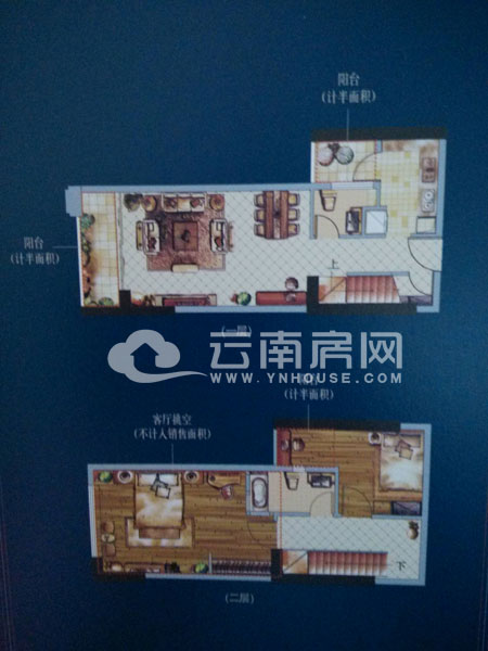 C2戶型,建筑面積約85平米躍層,為兩室兩廳一廚兩衛(wèi)一露臺(tái)一陽(yáng)臺(tái)設(shè)計(jì)。