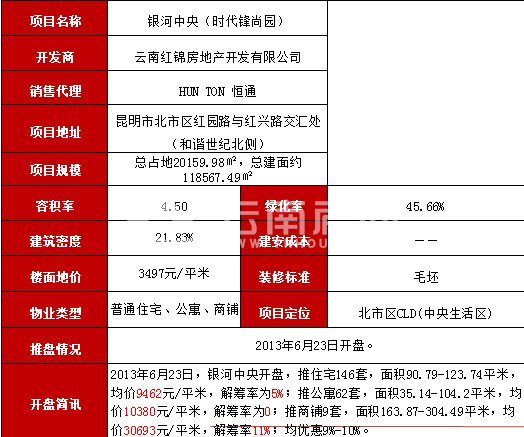 銀河中央開盤分析:住宅均價(jià)9462元/平米 銷售率率5%