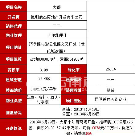 大都開盤分析:均價10078元/平米 優(yōu)惠3%-4%
