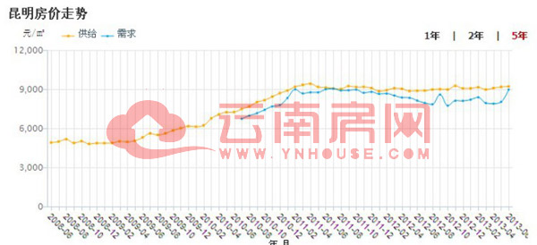 從昆明房價走勢圖上看,從2010年6月有房源供需統(tǒng)計以來,昆明的房源供需基本都是供給大于需求,不過供給與需求的逐漸拉大并沒有促成房價的下跌。