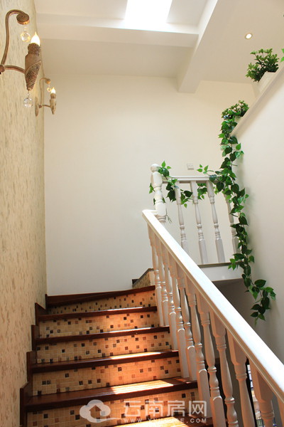 通往三樓的樓梯帶采光設計能保持屋內(nèi)的明亮