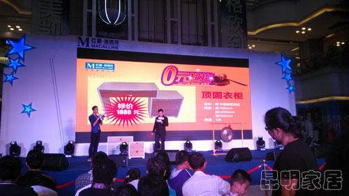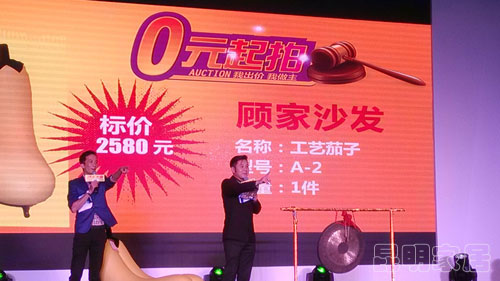 由昆明電視臺(tái)主持人許諾、張樂(lè)主持的零元起拍活動(dòng)拉開(kāi)活動(dòng)序幕,活動(dòng)開(kāi)始之前抽出了此次活動(dòng)的四等獎(jiǎng)10名。此次幸運(yùn)大抽獎(jiǎng)活動(dòng),一等獎(jiǎng)為Iphone5一臺(tái),二等獎(jiǎng)為IPADMINI2臺(tái),三等獎(jiǎng)為32寸液晶電視7臺(tái),四等獎(jiǎng)為微波爐10名,另外還有一份神秘大獎(jiǎng)。包括顧家沙發(fā)、頂固衣柜、璜瑪衛(wèi)浴、英皇衛(wèi)浴、芝華士、斯帝羅蘭、港都家具紅星標(biāo)卓店、舒達(dá)床墊等一線品牌在內(nèi)的眾多家具參與了拍賣(mài)活動(dòng);顒(dòng)現(xiàn)場(chǎng)參與者眾多,很多消費(fèi)者紛紛上臺(tái)驗(yàn)貨,感受產(chǎn)品的質(zhì)量,爭(zhēng)先給出自己的價(jià)格,甚至有消費(fèi)者因?yàn)橥瑫r(shí)鐘情于一件商品而爭(zhēng)鋒相對(duì),家具最終均以低于標(biāo)價(jià)很多的優(yōu)惠價(jià)格被消費(fèi)者購(gòu)得。