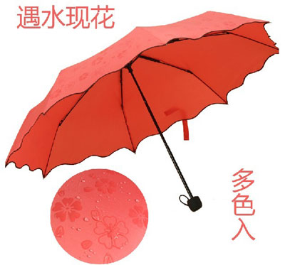 遇水現(xiàn)花晴雨傘創(chuàng)意禮品傘荷葉邊糖果色變色折疊傘