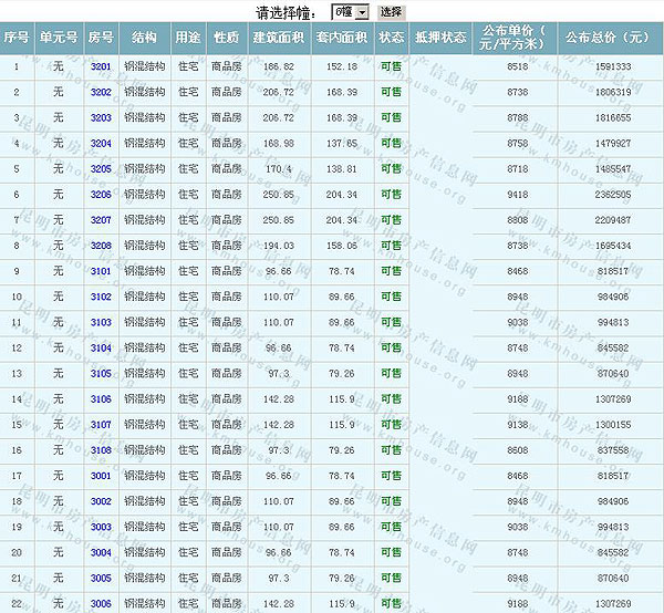 根據(jù)云南省物價(jià)局關(guān)于發(fā)布《云南省商品房銷售明碼標(biāo)價(jià)實(shí)施細(xì)則(試行)》的通知,現(xiàn)將該項(xiàng)目商品住房的準(zhǔn)售房源及每套房屋價(jià)格向社會(huì)公布,房地產(chǎn)開發(fā)企業(yè)應(yīng)嚴(yán)格按照公布價(jià)格,商品房銷售明碼標(biāo)價(jià)實(shí)行一套一標(biāo)。商品房經(jīng)營者應(yīng)當(dāng)對(duì)每套商品房按照建筑面具進(jìn)行明碼標(biāo)價(jià),否則,房產(chǎn)登記機(jī)關(guān)不予登記備案。準(zhǔn)售房源及房價(jià)信息如下: