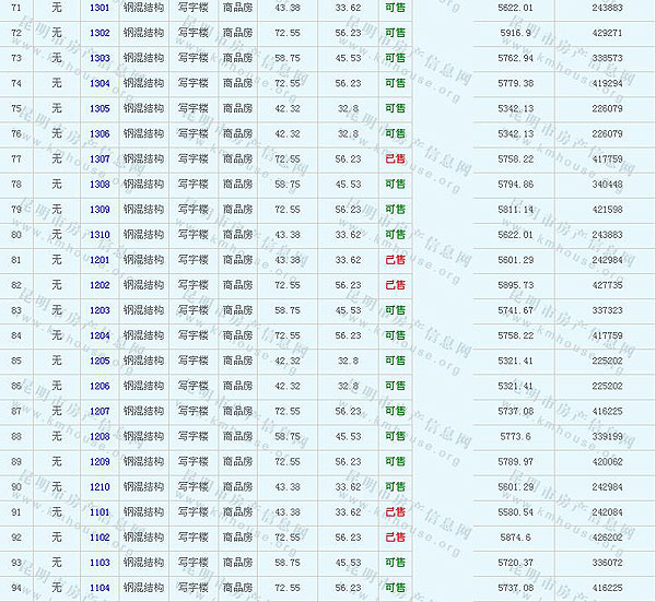 奧宸滇池星城(G07地塊)Ⅱ準售房源及房價公示