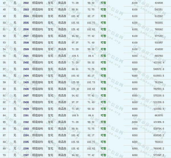 未名城(A8地塊)準(zhǔn)售房源及房價公示