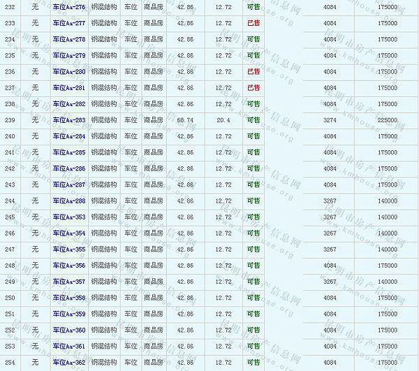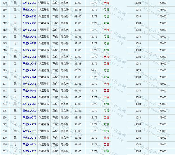 未名城(A8地塊)地下車庫(kù)及售價(jià)公示