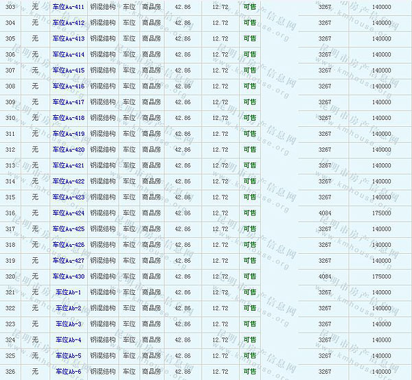 未名城(A8地塊)地下車庫及售價公示