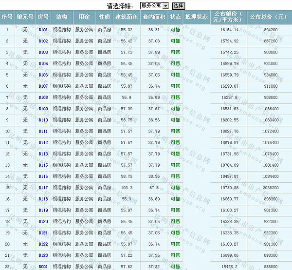 根據(jù)云南省物價局關(guān)于發(fā)布《云南省商品房銷售明碼標價實施細則(試行)》的通知,現(xiàn)將該項目商品住房的準售房源及每套房屋價格向社會公布,房地產(chǎn)開發(fā)企業(yè)應(yīng)嚴格按照公布價格,商品房銷售明碼標價實行一套一標。商品房經(jīng)營者應(yīng)當對每套商品房按照建筑面具進行明碼標價,否則,房產(chǎn)登記機關(guān)不予登記備案。準售房源及房價信息如下: