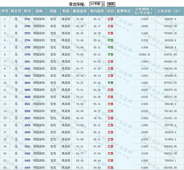 根據(jù)云南省物價局關于發(fā)布《云南省商品房銷售明碼標價實施細則(試行)》的通知,現(xiàn)將該項目商品住房的準售房源及每套房屋價格向社會公布,房地產(chǎn)開發(fā)企業(yè)應嚴格按照公布價格,商品房銷售明碼標價實行一套一標。商品房經(jīng)營者應當對每套商品房按照建筑面具進行明碼標價,否則,房產(chǎn)登記機關不予登記備案。準售房源及房價信息如下:
