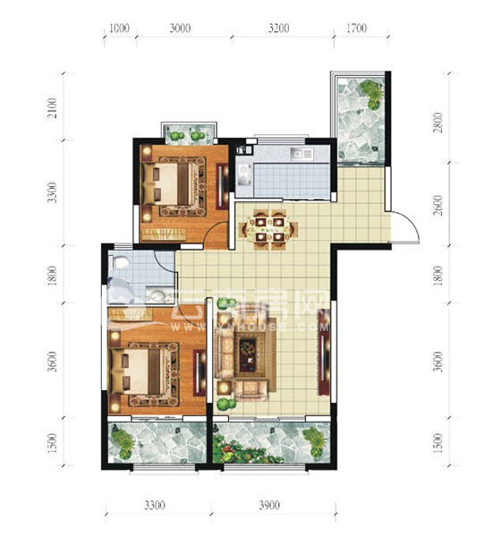此戶型設計精巧方正,功能分區(qū)明確齊全;廚房緊連生活陽臺,增加空間利用率,且便于生活;三陽臺設計,可多景觀多角度欣賞窗外美景;入戶留有一塊空間,可作屏風設計,保證業(yè)主私密性;全明戶型設計,保證每間房間的通風采光需求。