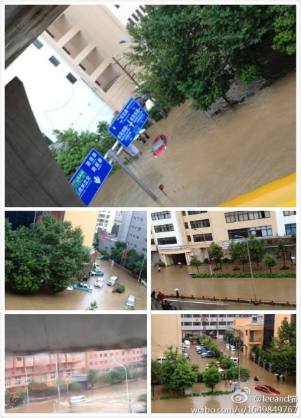 @leeand貓:石虎關(guān)立交橋下,小車被淹,水最深處沒過大腿,最淺也沒過腳踝,二環(huán)上一路飄紅堵死。