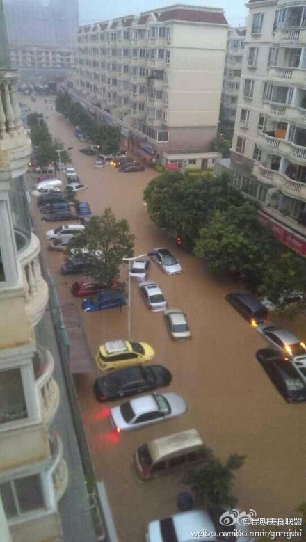 暴雨夜襲昆明 盤龍江水暴漲全城交通癱瘓
