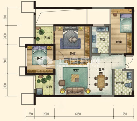 入門的兩側(cè),臥室和衛(wèi)生間相對(duì)。廚房緊鄰臥室,餐廳緊鄰衛(wèi)生間和客廳。客廳的一側(cè),是一個(gè)正方形的景觀陽臺(tái),在保證客廳通風(fēng)采光的同時(shí),亦可加以好好利用,或養(yǎng)點(diǎn)花花草草,或擺放一張小桌,品茗看書,無疑使打發(fā)閑暇時(shí)光的一種好的休閑方式。與客廳相對(duì),便是主臥。主臥與另外一個(gè)陽臺(tái)緊密相連,主要的采光依賴于陽臺(tái),這樣的設(shè)計(jì)無疑讓生活多了一重情趣。此外,另一個(gè)客臥與主臥相鄰。