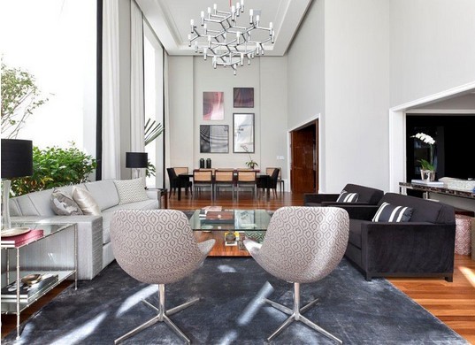 在大空間當(dāng)中混合優(yōu)雅和舒適顯然是一個(gè)棘手的問題。然而,設(shè)計(jì)師盧西亞諾達(dá)拉瑪塔對此進(jìn)行了挑戰(zhàn),并獲得了令人矚目的成果。這個(gè)巴西家庭由于其高高的天花板,白色的墻壁和吊燈而顯得莊嚴(yán),但圖形藝術(shù),繪畫,綠植和舒適的家具的存在則使得室內(nèi)溫馨。通過消除墻面,社交領(lǐng)域的隔間相互連通,這些都受益于豐富的自然采光。
