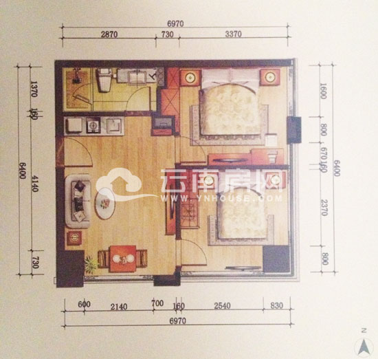 戶型B總面積約41.88平米,東西朝向,做成了通間的設(shè)計(jì)。格局方正,明亮實(shí)用,空間基本不浪費(fèi)。并且功能分區(qū)明晰,簡單實(shí)用。廚衛(wèi)分離,生活空間能夠更加干凈、安全。能夠滿足商務(wù)住宿的基本需求。