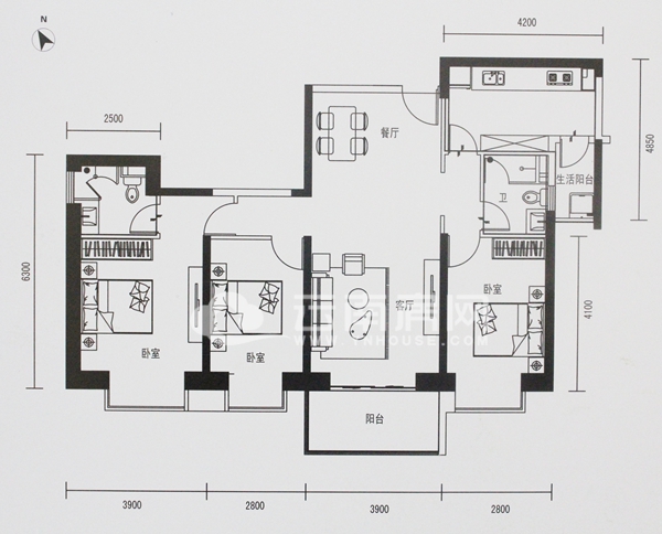 不足之處:本戶型的走廊過(guò)道浪費(fèi)面積稍多,業(yè)主在裝修時(shí)可根據(jù)需要合理利用空間,較少空間浪費(fèi)。