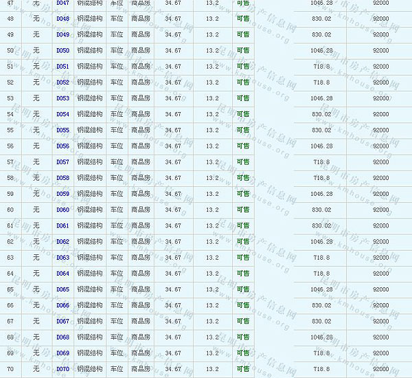 根據(jù)云南省物價(jià)局關(guān)于發(fā)布《云南省商品房銷售明碼標(biāo)價(jià)實(shí)施細(xì)則(試行)》的通知,現(xiàn)將該項(xiàng)目商品住房的準(zhǔn)售房源及每套房屋價(jià)格向社會(huì)公布,房地產(chǎn)開(kāi)發(fā)企業(yè)應(yīng)嚴(yán)格按照公布價(jià)格,商品房銷售明碼標(biāo)價(jià)實(shí)行一套一標(biāo)。商品房經(jīng)營(yíng)者應(yīng)當(dāng)對(duì)每套商品房按照建筑面具進(jìn)行明碼標(biāo)價(jià),否則,房產(chǎn)登記機(jī)關(guān)不予登記備案。準(zhǔn)售房源及房?jī)r(jià)信息如下: