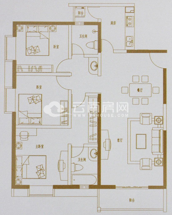 128平米的三房戶型