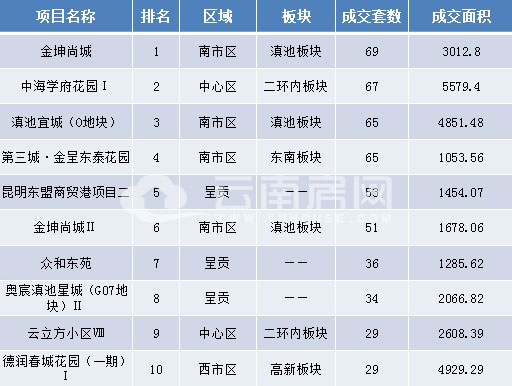 本周備案前三強(qiáng)分別位于南市區(qū)與中心區(qū),排名先后順序?yàn)椋航鹄ど谐、中海學(xué)府花園Ⅰ和滇池宜城(O地塊)。注:由于備案系統(tǒng)公布數(shù)據(jù)局限,top10排名僅做參考。