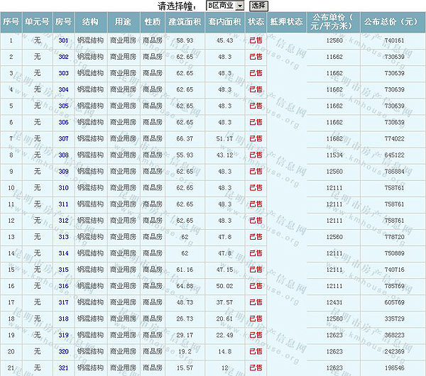 根據(jù)云南省物價局關(guān)于發(fā)布《云南省商品房銷售明碼標價實施細則(試行)》的通知,現(xiàn)將該項目商品住房的準售房源及每套房屋價格向社會公布,房地產(chǎn)開發(fā)企業(yè)應(yīng)嚴格按照公布價格,商品房銷售明碼標價實行一套一標。商品房經(jīng)營者應(yīng)當對每套商品房按照建筑面具進行明碼標價,否則,房產(chǎn)登記機關(guān)不予登記備案。準售房源及房價信息如下: