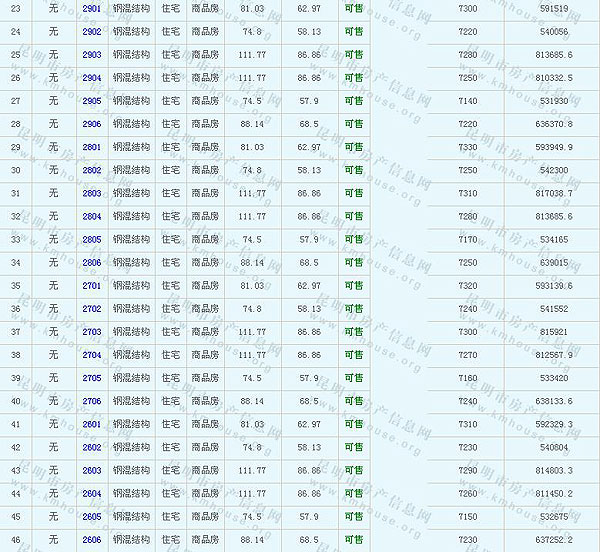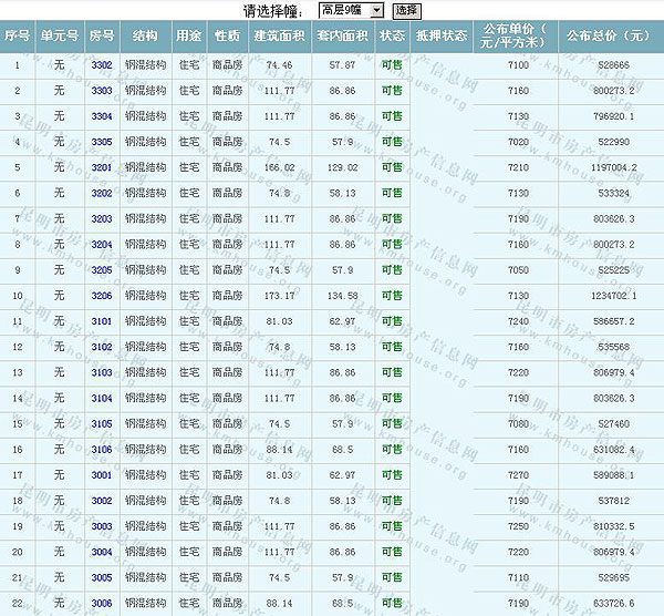 根據(jù)云南省物價(jià)局關(guān)于發(fā)布《云南省商品房銷(xiāo)售明碼標(biāo)價(jià)實(shí)施細(xì)則(試行)》的通知,現(xiàn)將該項(xiàng)目商品住房的準(zhǔn)售房源及每套房屋價(jià)格向社會(huì)公布,房地產(chǎn)開(kāi)發(fā)企業(yè)應(yīng)嚴(yán)格按照公布價(jià)格,商品房銷(xiāo)售明碼標(biāo)價(jià)實(shí)行一套一標(biāo)。商品房經(jīng)營(yíng)者應(yīng)當(dāng)對(duì)每套商品房按照建筑面具進(jìn)行明碼標(biāo)價(jià),否則,房產(chǎn)登記機(jī)關(guān)不予登記備案。準(zhǔn)售房源及房?jī)r(jià)信息如下: