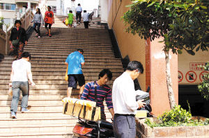 2.進出小區(qū)有3道大門,但每道大門前都有30多級臺階。老人和推車的住戶,難以行走。