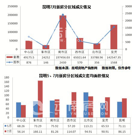 7月監(jiān)測(cè)備案套數(shù)排名前三的區(qū)域分別是:南市區(qū)、呈貢與中心區(qū)。其中,南市區(qū)備案2430套,呈貢備案1568套,中心區(qū)備案876套。