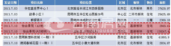 2013年7月昆明房地產(chǎn)項目動態(tài)