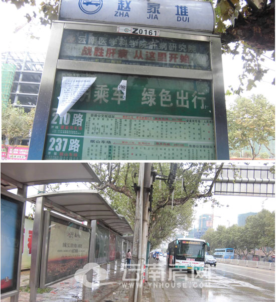 人民路壹號廣場位于昆明市五華區(qū)人民西路與西園北路交叉口,附近公交車站有趙家堆、梁家河車場等,途經(jīng)公交車有210、237、100、115、54、61、66、69、82、93等,小編從小花園出發(fā),乘坐61路公交車15分鐘不到就抵達趙家堆,順著巨幅的墻體廣告直行走到項目售樓處,不是周末,售樓處也有三兩個前來看房的人。