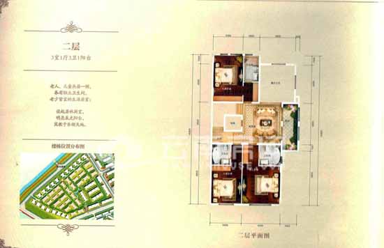 二層為三室一廳三衛(wèi)一陽臺的設計,老人和兒童共局一側,均享有獨立的衛(wèi)生間。該樓層設有起居休閑室,且連接約9平米的觀景陽臺,通風采光俱佳。