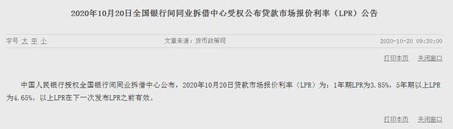 央行公布10月LPR,連續(xù)7個月沒有變化