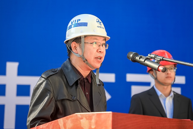 中交南亞總部大廈封頂儀式現(xiàn)場(chǎng)項(xiàng)目代表上臺(tái)致辭