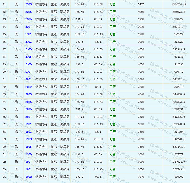 春城慧谷(A2地塊)1、2幢準(zhǔn)售房源及房價